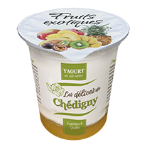 Lait de vache entier pasteurisé d’origine France, fruits préparés 16% (sucre, fruits, amidon, pectine, arôme, sorbate de potassium, carmin, acide citrique), sucre, poudre de lait écrémé, ferments lactiques.